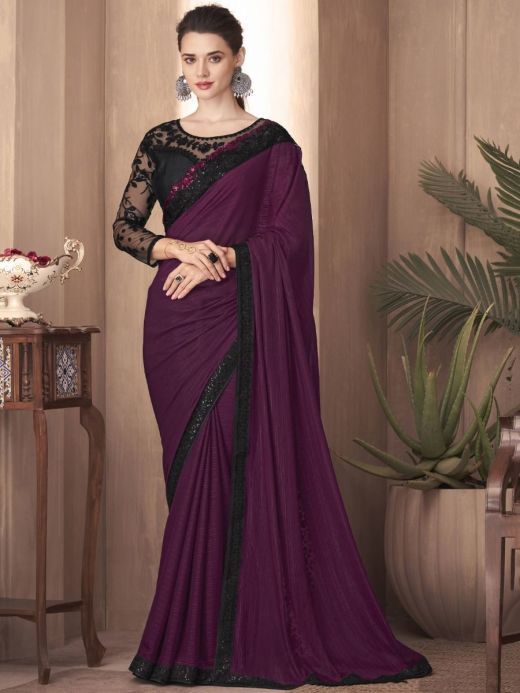 Superior Purple Sequined Embroidery Party Wear Saree....